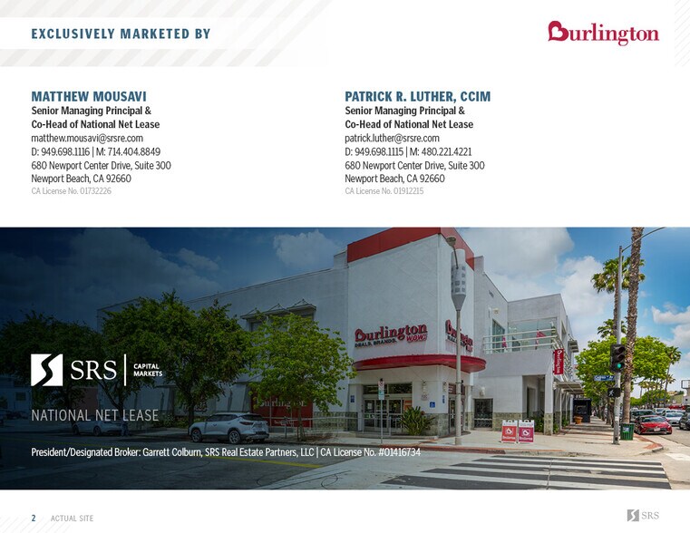 The Burlington is located along Ventura Boulevard, a primary commuter thoroughfare averaging over 52,000 vehicles passing by daily. The property is positioned just south of U.S. Highway 101 (314,000 VPD), a major north/south travelling highway connecting Santa Barbara to Los Angeles. Additionally, the asset situated just east of Interstate 405 (282,000 VPD), a major north/south travelling highway which connects Los Angeles to Orange County. Furthermore, the site is located just southwest of Westfield Fashion Square, a premier luxury 868,000 square foot shopping destination that features national/credit tenants including Macy’s, Old Navy, Bath & Body Works, and H&M. The property is in the center of a primary retail corridor with other nearby national/credit tenants including Costco Wholesale, Target, Whole Foods, Michaels, CVS Pharmacy, and more, further increasing consumer traffic to the site. The 5-mile trade area is supported by a population of over 492,300 with an affluent average household income of $149,462.