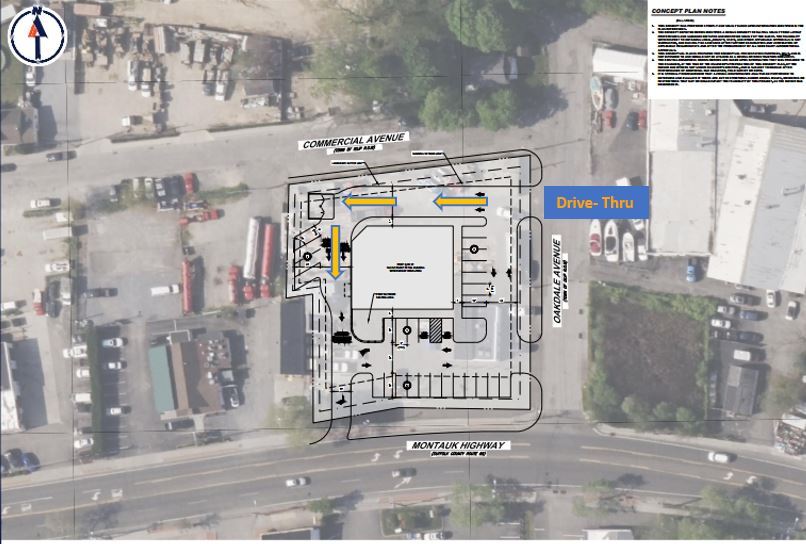 Nouveau développement avec Drive-Thru disponible Louez un terrain ou construisez sur mesure Angle dur Façade : 204 pieds sur l'avenue Commercial, 186 pieds sur l'autoroute Montauk. , 206' sur Oakdale Avenue Chiffres de trafic de 19 093