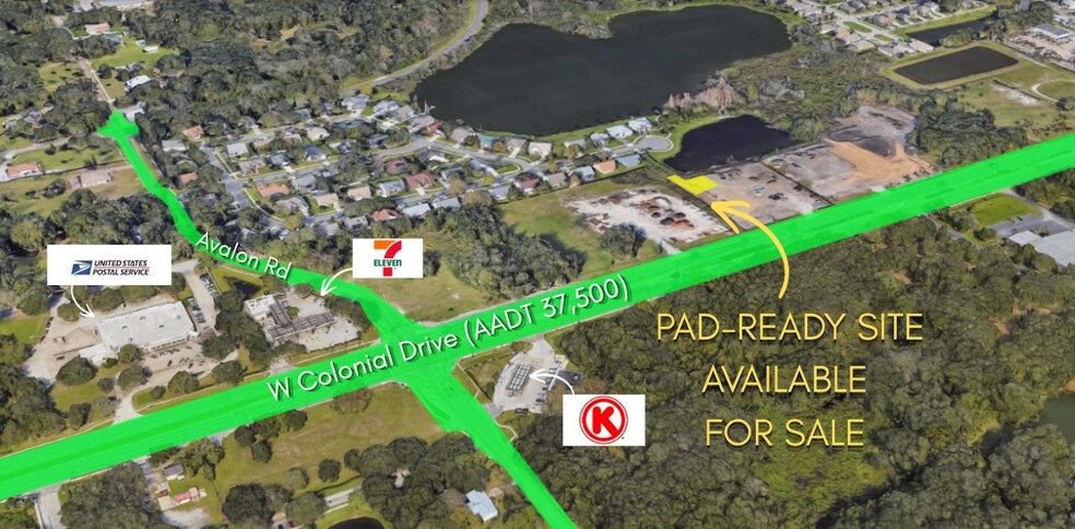 Rare opportunity to purchase a 6,500 SF buildable pad site in the heart of Winter Garden! Located within Royal Sky Plaza just off W. Colonial Drive (SR 50), this site offers high visibility, ample parking, and premium signage opportunities — all with a scenic water view.
