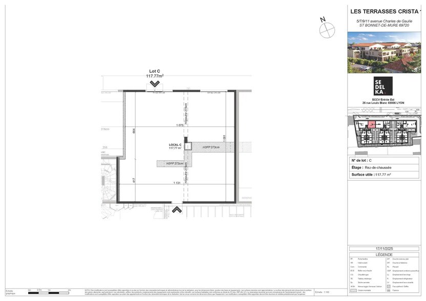 | Espace total disponible | 117 m² | Surface commerciale utile | 60 m² |
