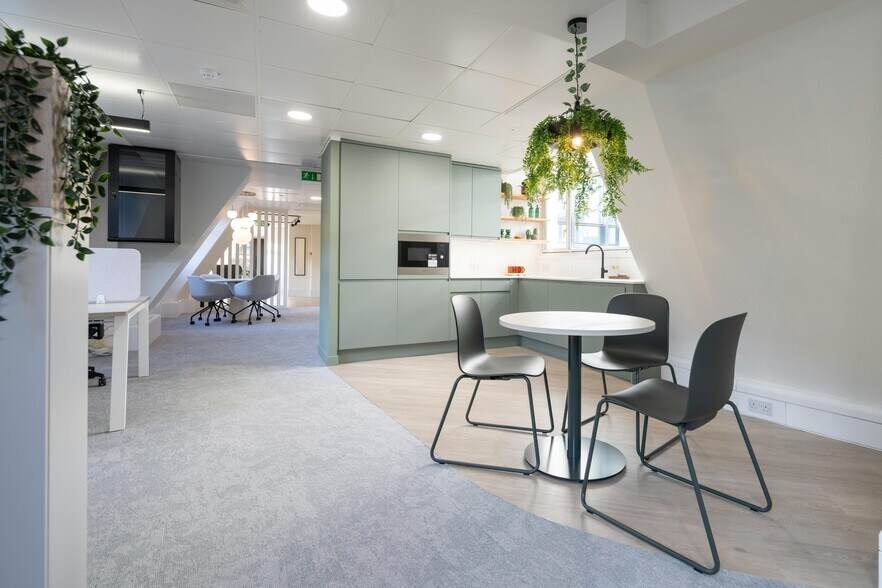 The 5th floor space provides fitted office space with Attractive, modern reception, One 10 person passenger lift, Excellent natural light, Male and female WC’s, VRV air-conditioned, Metal tile suspended ceilings, Basement shower/WC Storage.