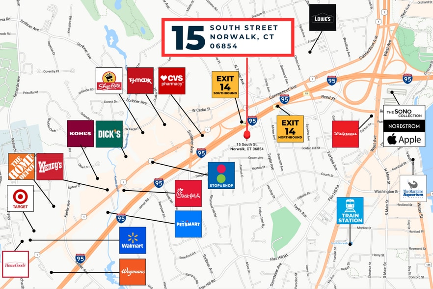 - Strategic Location: Perfectly positioned at the I-95 (Exit 14) and Route 7 intersection, offering rapid access to Stamford and Bridgeport.