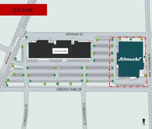 65,138 square foot Schnucks Grocery Store. Several access points on Creston Park, Newman, and Randall streets. Large pylon signs are located on Milton Avenue Located among many national restaurants, retailers, and residential neighborhoods. Traffic counts on Milton Avenue are 22,600 (per WISDOT). Property is zoned B2 Community Shopping. Per City of Janesville.