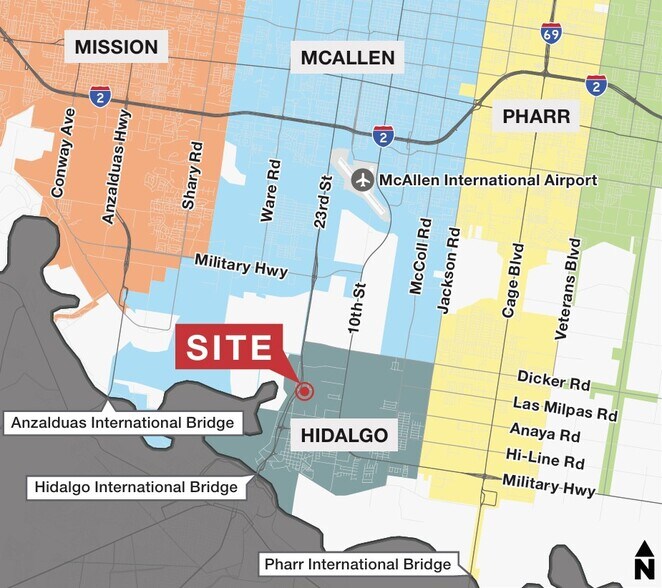 - Le site est situé juste à côté du pont international d'Hidalgo.