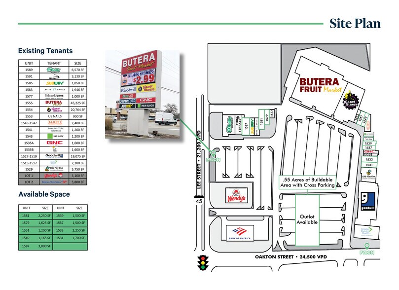 Oaks Shopping Center 1515-1589 Lee St Espace disponible | 108–1 225 m² | Local commercial | Des Plaines, IL 60018