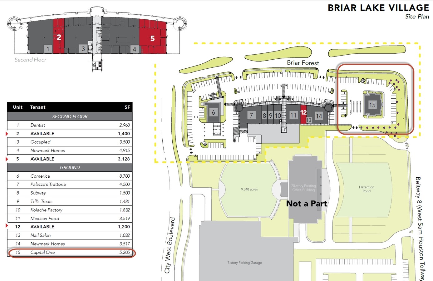 Located within the One World Bank building in Houston’s Westchase District—at the corner of Beltway 8 and Briar Forest Drive—this high-visibility commercial space offers exceptional exposure to heavy daily traffic. Designed for flexibility, it includes private offices, open work area, and a welcoming reception lobby—ideal for a variety of business uses. Ample on-site parking, on-site security, and direct access enhance convenience and peace of mind for both staff and visitors. Interstate 10/Katy Freeway is two miles away and provides easy accessibility to CityCentre, Memorial City Mall, and International District. This prominent corner location is ready to support your business growth.