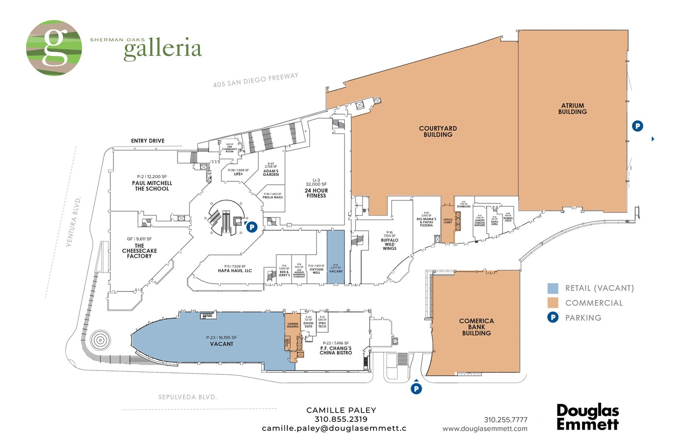 The Sherman Oaks Galleria is a state of the art, open air lifestyle center that includes 750,000 square feet of Class-A office space in four buildings overlooking a 250,000 square foot retail and entertainment complex. Generations of Valley residents have made memories here, and today the property continues to evolve as a modern hub for the entire community. With its vibrant mix of restaurants, shops, entertainment, and offices, the Galleria is where families enjoy a night out, neighbors meet for coffee, and professionals come together during the day. Easily accessible from the 101 and 405 freeways, the Galleria is both a local landmark and a central destination, offering businesses the opportunity to become part of a place deeply woven into the fabric of Valley living. With prime visibility at the intersection of the 101 and 405 freeways, The Galleria offers unmatched accessibility and brand exposure for restaurants and retailers that wish to be at the center of Valley living.
