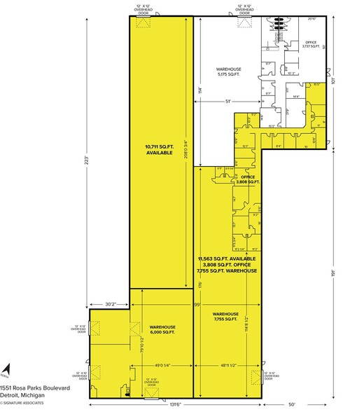 The property is an industrial facility located at 1551 Rosa Parks Boulevard in Detroit, Michigan. It includes warehouse and office space, multiple grade-level doors, and on-site parking. The site is positioned near major highways, including I-75 and I-96, providing access to Detroit’s central business district and surrounding areas.