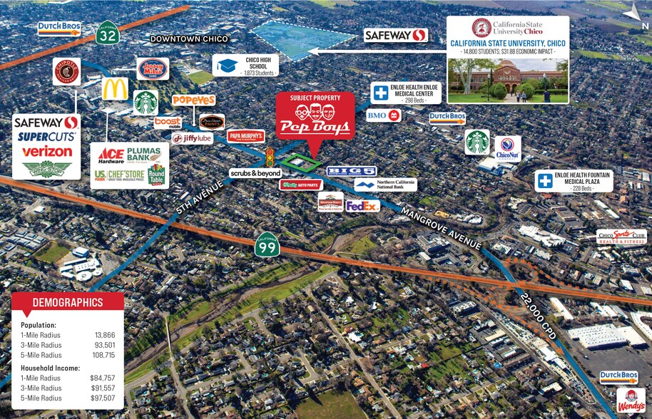 Pep Boys | Chico, CA 1555 Mangrove Ave Local commercial 1 690 m² 100 % Loué À vendre Chico, CA 95926 2 478 163 € (1 465,97 €/m²) Taux de capitalisation 6 %