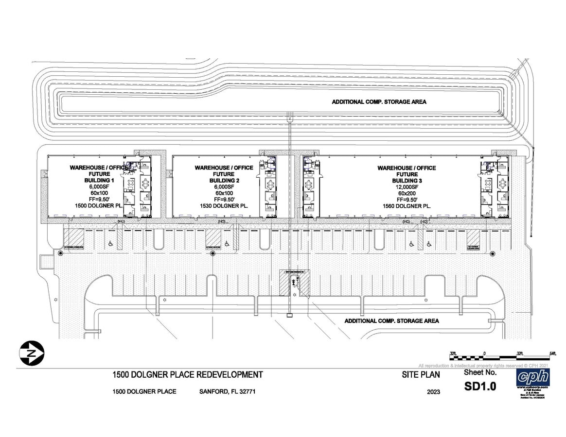 An industrial redevelopment now underway in Sanford will introduce three state-of-the-art industrial buildings, ideal for modern warehouse and office operations. With Building 1 already secured, Building 2, located at 1530 Dolgner Place, features 6,000 square feet of space with a 60-by-100-foot layout. The building includes office plans with a reception area, private office, conference room, small kitchen, break area, and restrooms. Building 3, located at 1660 Dolgner Place, offers 12,000 square feet with a 60-by-200-foot footprint and options to be divided into two units. A larger office layout is available for businesses needing expanded administrative space. Front parking and front-load configuration provide convenient access, while grade-level loading through robust overhead doors supports efficient operations. These facilities are ideal for warehouse, light manufacturing, or distribution operations seeking functional and adaptable space. Amenities include an on-site private marina offering first-class dockage and boat storage, along with immediate access to the St. John’s River and a scenic waterfront restaurant. The Port of Sanford’s central location ensures seamless access to the Central Florida commercial market. Situated approximately 24 miles north of Orlando, the site is easily accessible via Interstate 4 and the Central Florida GreeneWay, connecting businesses to regional transportation routes. Industrial capability, office functionality, and nearby waterfront amenities make this new development a unique opportunity for companies seeking a versatile commercial facility.