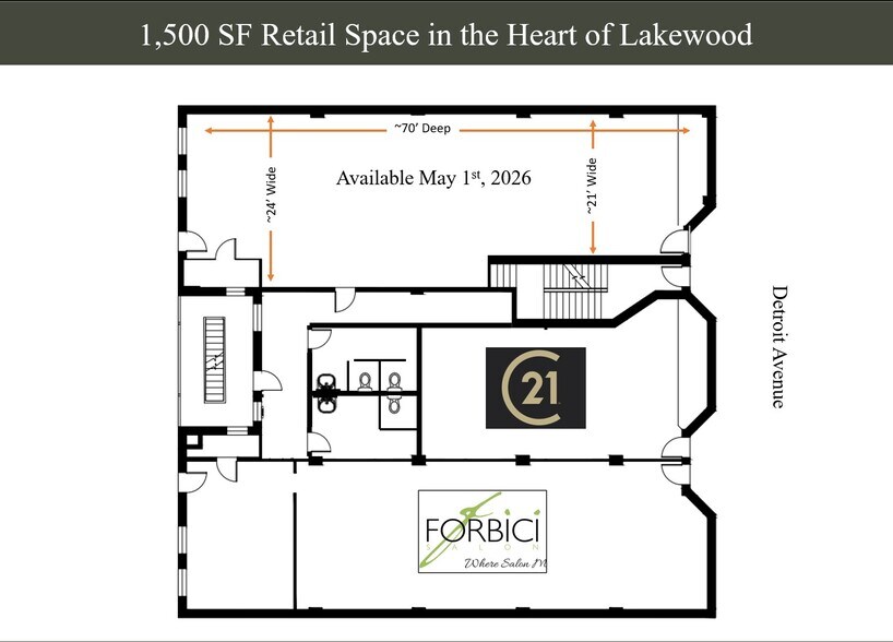 Prime Retail & Small Office Space Available 15612-15618 Detroit Ave 8–148 m² | À louer | Lakewood, OH 44107
