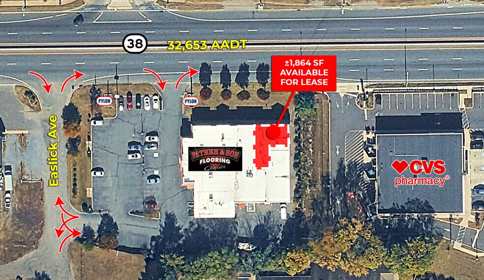 - Great Visibility from heavily Trafficked Route 38 with 32,653 AADT and Abundant Parking