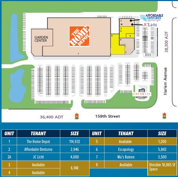 - Home Depot Center offers high visibility via S Harlem Avenue and 159th Street (Route 6) with daily traffic counts of 33,369 vehicles per day.