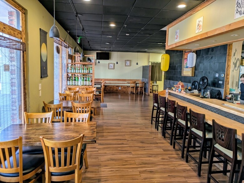 1,550 SF. The current tenant is a Japanese Izakaya restaurant serving beer and Wine. The counter seats 10, and 34 seats are in the dining room. The base rent is $4,960.12, and NNN is $1,465.00. The landlord will issue a new lease. The restaurant is equipped with a 16-foot hood, a grease trap, a walk-in refrigerator, and a freezer. The key money is $110,000.00.