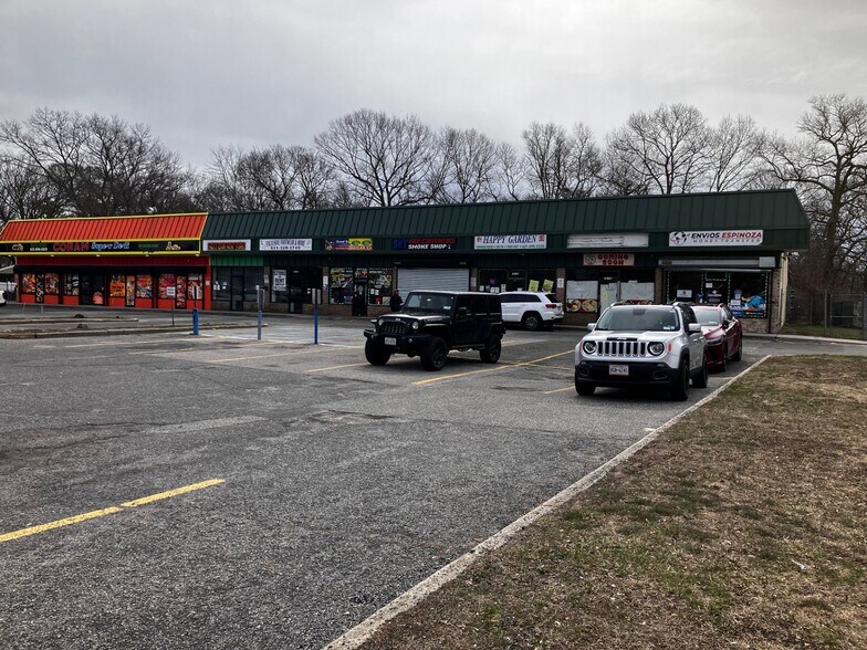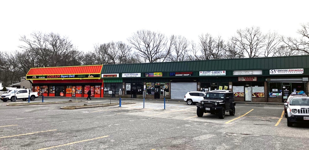 Centre communautaire de 8 unités avec un grand parking (70). Côté sud de Middle Country Road entre Fife et Erna Drives.