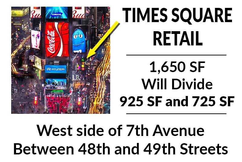 730 Seventh Avenue -Next to M&M's World -Between 48th and 49th Streets -43' Frontage -20' Ceiling Heights -Available Immediately -Rent $95,000 per month