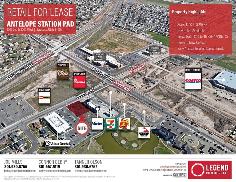 New construction project located right off of West Davis Hwy in close proximity to brand new Costco. 1-2 units available ranging from 1,100 to 3,215 SF with or without a drive thru.