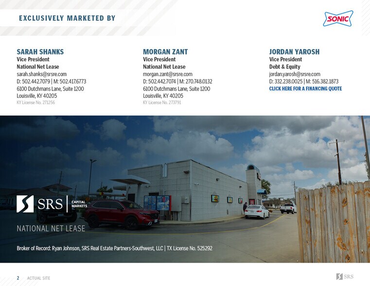 • Lease is guaranteed by the Sonic entity. Parent company here is Emerge!Restaurant Group with nearly 200 restaurants across all their brands