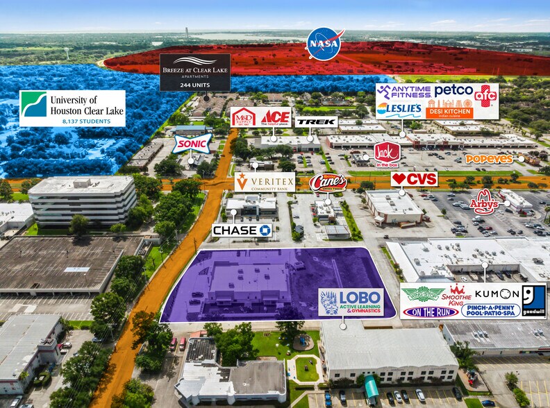 - Clear Lake area is home to an affluent community surrounded by rooftops, as well as a multitude of industries, with 38.4SF of commercial space.