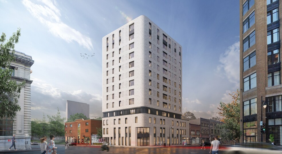 This modern retail property is located on the ground floor of a newly constructed mixed-use development in the heart of Montreal. The building features a contemporary design and houses 168 student residential units above, ensuring a built-in customer base and consistent foot traffic. Positioned along Saint-Laurent Boulevard, one of the city’s most vibrant corridors, the property benefits from exceptional visibility and accessibility. Its prime location places it within walking distance of Quartier des Spectacles, the University of Quebec in Montreal, and numerous cultural and entertainment venues. The property is also just a two-minute walk from the Saint-Laurent metro station, providing excellent connectivity to the greater Montreal area. Surrounded by a dynamic mix of retail, dining, and residential developments, this property offers an outstanding opportunity for businesses seeking a high-exposure location in a thriving urban environment.