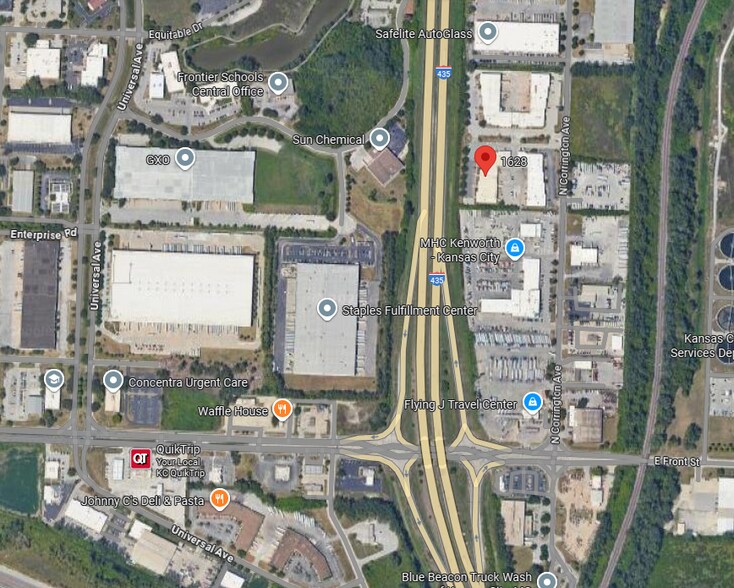 This well-located flex space off I-435 and Front Street offers ±2,207 SF of functional office and warehouse space, ideal for light industrial, service, or distribution users. The property features a 10' x 10' drive-in door, reception area, open bullpen, conference room, private office, and two bathrooms—one equipped with a shower for added convenience. Ample warehouse space complements the office areas, and several on-site parking spaces provide easy access for employees and clients. Zoned M2-5, this versatile property combines excellent visibility, accessibility, and flexibility for a variety of business operations.