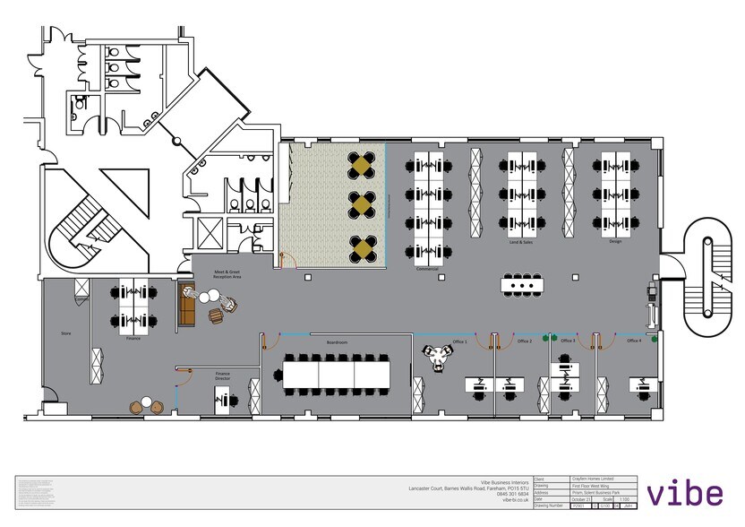 Prism extends to 29,591 sq ft (2,749 sq m) over ground and two upper floors, and is arranged as two wings either side of a central atrium. New amenity facilities have also been created on site as part of the extensive refurbishment with a new secure tenant cycle store and showers access via the carpark at the front of the building. The First Floor West Wing comprises of 4,666 sq ft can be offered with the existing fitout, comprising a combination of open plan space, a generous kitchen/ break out area and a selection of offices, meeting rooms and storage. New amenity facilities have also been created on site as part of the extensive refurbishment with a new secure tenant cycle store and showers access via the carpark at the front of the building