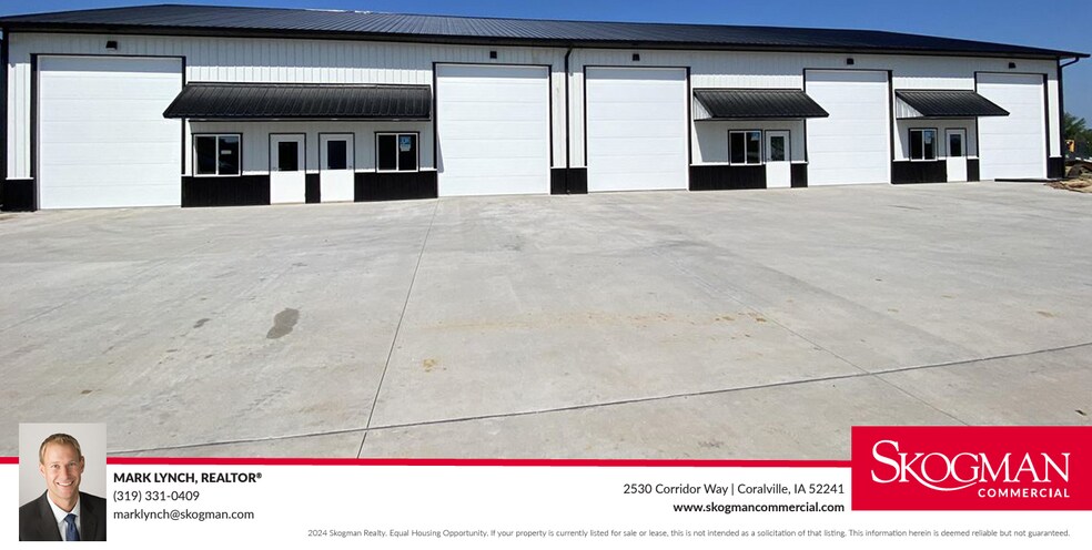 Future Flex ou Warehouse est l'espace idéal pour votre future entreprise ou bureau. Ces baies sont en cours de construction et seront achevées au début du printemps 2025. Un excellent emplacement à proximité de l'autoroute 1 et à proximité de l'autoroute I-380 sud et de l'échangeur de l'autoroute 1. L'un des bâtiments mesure 10 500 pieds carrés et l'autre 12 000 pieds carrés, les baies peuvent être démodées pour les besoins de l'acheteur. Grand parking devant les baies. Le taux de location demandé est de 14,00$ par pied brut. Plan du site dans les documents. La photo montre un bâtiment similaire. L'un des propriétaires est un agent immobilier agréé dans l'État de l'Iowa.
