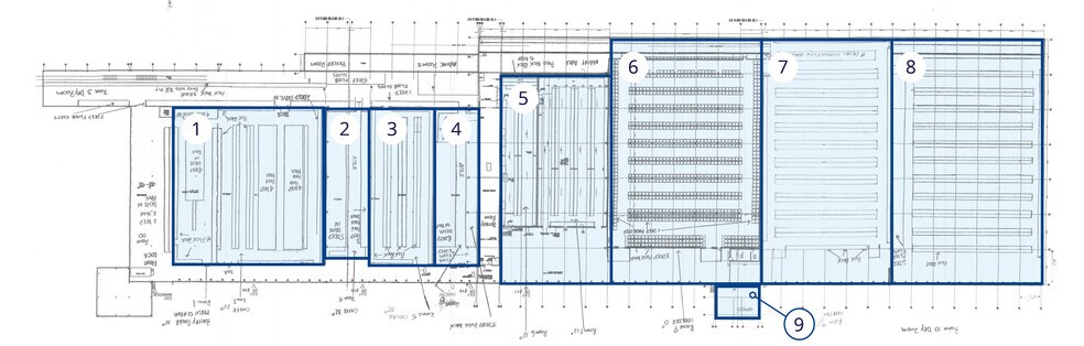 Cold Storage and Food Distribution Campus for lease. Building 3 leasable industrial/cold storage and office space up to full building. See floor plan for specifics on 9 bays available.
