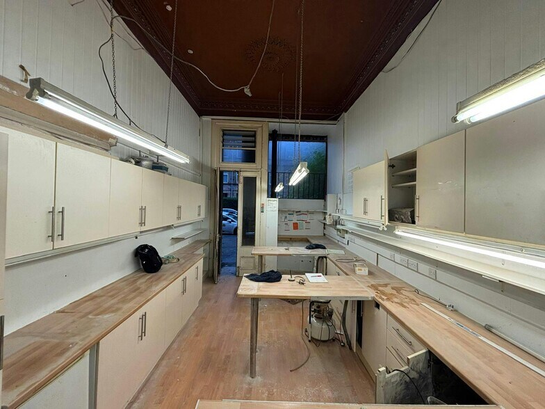 Ground floor Class 1A premises forming part of a larger tenement building. Externally benefits from attractive full height shopfront with adjacent customer door protected by original storm doors.