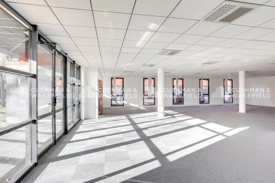 Cet espace situé au premier étage bénéficie d’un aménagement moderne et fonctionnel. Les plateaux rénovés offrent une grande flexibilité pour l’organisation des postes de travail. L’accès est sécurisé par badge et interphone, et la climatisation réversible garantit un confort thermique optimal. Les parties communes sont équipées de sanitaires et l’immeuble dispose d’un ascenseur pour une accessibilité totale. Des parkings extérieurs et en sous-sol sont disponibles pour les collaborateurs et visiteurs.