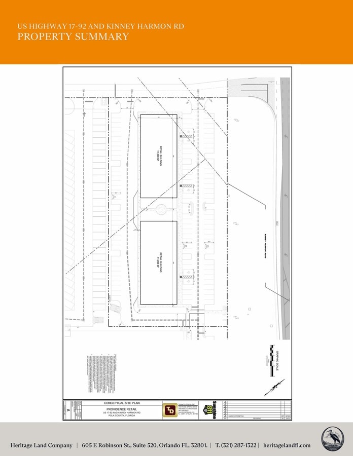 Prime retail, office, or restaurant space available at US Hwy 17-92 & Kinney Harmon Rd in Davenport, FL. The site offers 2.0± acres with 1,400–22,400 SF available, including restaurant end caps. Located in front of a newly built self storage facility and next to the main entrance into the Providence Neighborhood, the property provides cross access to US Hwy 17-92 for excellent visibility and connectivity. Surrounded by strong demographics and rapid growth, this location is ideal for businesses seeking a high-traffic, expanding area in Polk County.