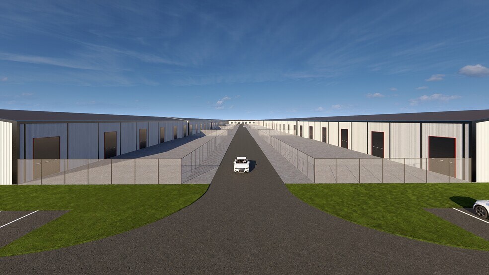 Brand new construction with industrial flex units ranging from 1,600 - 10,000 SF. These specific spaces include fenced in yard spaces in the rear of the unit with full aceess via designated roadway and gate. Standard finish out includes an office and bathroom with full HVAC and stained concrete floors throughout unit. One 12' x 14' drive in bay door with a glass storefront entrance per unit. Pre-lease for potential customization of the unit including mezzanines, kitchenettes, additional offices, etc. No NNNs, for Space is an Industrial Gross Lease