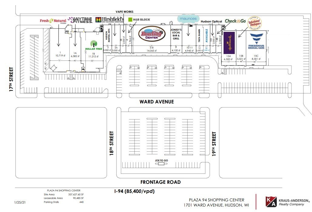 Plaza 94 Shopping Center 1701-1901 Ward Ave Espace disponible | 466–1 842 m² | Local commercial | Hudson, WI 54016