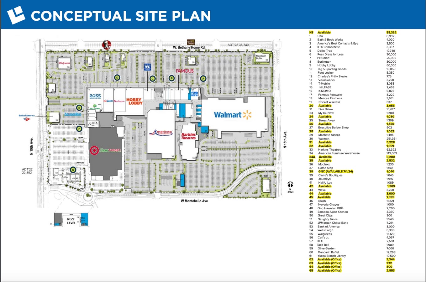 Dominant central Phoenix shopping center - join the newly signed American Furniture Warehouse, Hobby Lobby, and Burlington Coat Factory.