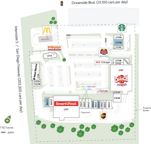 Oceanside Town & Country 1715-1779 Oceanside Blvd Espace disponible | 74–576 m² | Local commercial | Oceanside, CA 92054