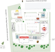 Oceanside Town & Country est un centre d'épicerie occupé par les épiceries Smart & Final et Crunch Fitness. Parmi les autres détaillants nationaux et régionaux du centre figurent Starbucks, Popeyes, T-Mobile, West Marine, The UPS Store, Supercuts et Avis Budget Car Rental. L'établissement est situé à l'échangeur de l'Interstate 5 (San Diego Freeway) et d'Oceanside Boulevard, à seulement 1,6 km de l'océan Pacifique. Plus de 235 000 véhicules passent par l'établissement chaque jour. Dans un rayon de 8 miles, résident près de 182 000 personnes dont le revenu familial moyen est de 101 750 dollars.