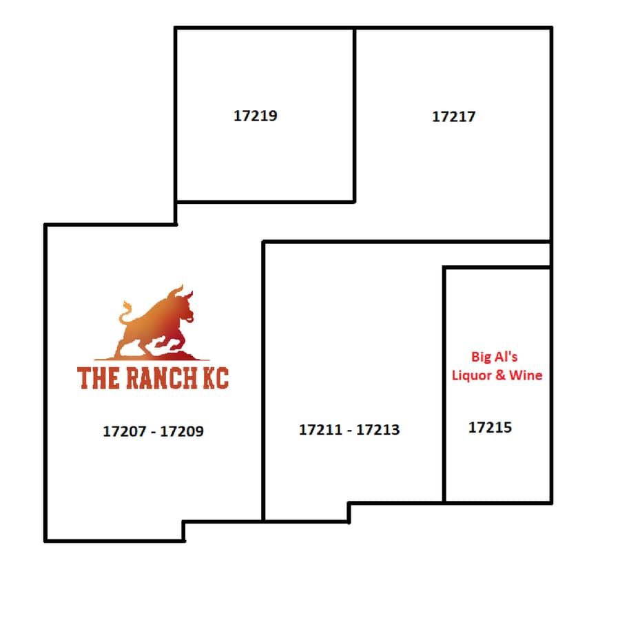 Fully renovated Q4, 2024. Corner anchor space with outdoor patio. Large, rustic dining room, large bar, walk in cooler with taps, primary kitchen with main line, secondary prep kitchen, large dish pit, second walk-in cooler, laundry area. Kitchen appliances (leased or purchased) negotiable. Currently tied to suite 17217 for attached 4,400 sq ft event space (listed separately) and 17219 (office and warehouse space also listed separately). Private storage room for liquor and dry goods. Plumbed in for outdoor smoker. Great visibility from MO-58 & I-49.