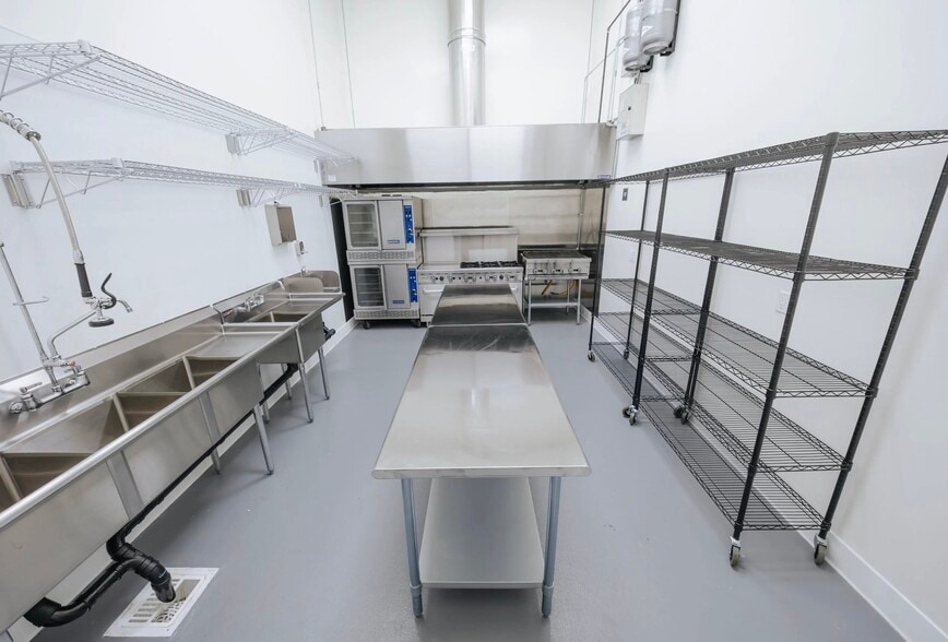 This private commercial kitchen is fully equipped and ready for serious culinary production, making it the perfect launchpad for your food business. These private kitchen suites offer an estimated 240 sq/ft of fully licensed, flexible production space. Each unit is designed for efficiency, with dedicated prep areas, sinks, storage, and optional cooking equipment. Perfect for growing businesses that need space to operate independently while staying connected to a larger culinary facility. Inside, you’ll find essential tools for efficiency and compliance, including a 3-compartment sink, prep sink, and hand sink. Two large stainless steel work tables provide ample prep space, while multiple shelving units help keep ingredients and tools organized. The kitchen also features a powerful hood system, a 6-burner stove, oven, and reliable electrical access with multiple 110/20-amp outlets. Whether you’re preparing meals for delivery, launching a catering concept, or experimenting with recipes for your next big product, this kitchen offers everything you need to hit the ground running in a professional, health-compliant space. Utilities are included with your rental, covering electricity, water, gas (in hot kitchens), and waste disposal. Each kitchen comes equipped with multiple outlets, full plumbing for sinks, and climate control. Trash and recycling services are also provided, so you can focus on your business without extra utility bills. Each kitchen includes 24/7 secure access so you can work on your schedule. Entry is controlled by key code or fob for added safety and convenience. Loading areas and parking are also available for easy deliveries and prep. These kitchens are ideal for cold prep, hot food production, baking, catering, and delivery-based businesses. Whether you’re launching a new brand or scaling up, the space is designed to support a wide range of food operations. Each kitchen includes shelving and prep space, with additional dry, cold, and freezer storage available as needed. Walk-in and reach-in options make it easy to store ingredients, supplies, or finished products. Flexible storage plans let you scale up as your business grows. Private Kitchens- Perfect for prep, cooking, baking, or production Cold Prep Kitchens start at $2,850/month Hot Prep Kitchens (with hood and cook line) start at $3,250/month Specialty Kitchens (Bakery, Dairy, High-Capacity) range from $2,550–$13,000/month Utilities & Maintenance: $850–$2,800/month Lease Terms: 6 or 12 months Security Deposit: Equal to one month’s rent Optional Equipment Rentals- Add-on commercial appliances to meet your needs Stove, Griddle, Fryer, Convection Oven: from $250/month Reach-in or Walk-in Fridge/Freezer: from $250/month Dry Storage: $9 per linear foot/month