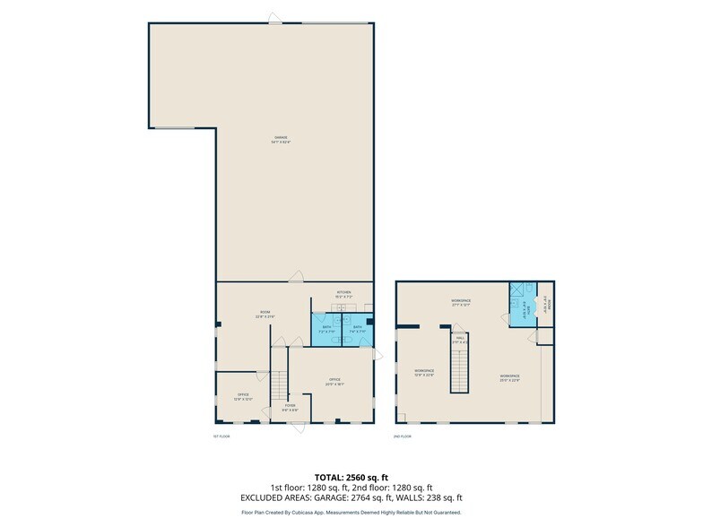 Second floor provides another ~1,280 sq ft of flexible office space – perfect for tech/lab, sales, or admin – with private bath. This upper level can also be opened to the industrial area as a mezzanine for light storage.