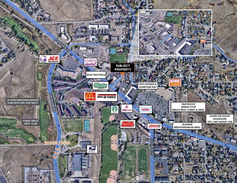 17507 S Golden Road offers a ±0.79-acre build-to-suit or ground lease opportunity in a well-established South Golden trade area with full movement access along Golden Road. The site is surrounded by daily-needs and national retailers, including King Soopers, McDonald’s, Starbucks, and Taco Bell, and is near the Colorado School of Mines and the future AVERE South Golden mixed-use development, adding 353 residential units. Zoned C-2, the property allows a broad range of commercial uses, providing a flexible option for users seeking a strategic presence in Golden’s south corridor. The property is located along South Golden Road in a well-established commercial corridor serving South Golden and nearby Lakewood. It benefits from immediate proximity to King Soopers, Colorado School of Mines, and a dense concentration of national and regional retailers. The site is also adjacent to the AVERE on South Golden mixed-use development, a 353-unit residential project under construction, which will add meaningful residential density and support future demand.