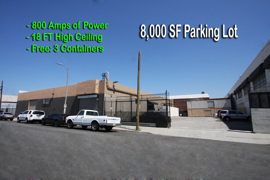 • Building Size: 12,700 SF. • Land Size: 20,000 SF (Parking Lot Size: Additional 8,000 SF). • Monthly Rent:"$15,000, gross." • Parking: Motorized parking gate with 22 parking spaces • Warehouse: 18 FT ceiling, wide-open, rectangular shape • Power Capacity: 800 Amps, 3 phase of power (Please verify!) • Loading: 2 G.L. loading doors, container truck loading possible. • Automatic parking gate and loading door. • Street: Located on wide and clean 21st St. between Alameda St. and Long Beach Ave. • Location: Near Washington Blvd. & Alameda St., just south of the #10 Freeway • Office Space: Approximately 2,000 SF. • Contact: Please text/call Bryant at (213) 503-8007 for showing instructions.
