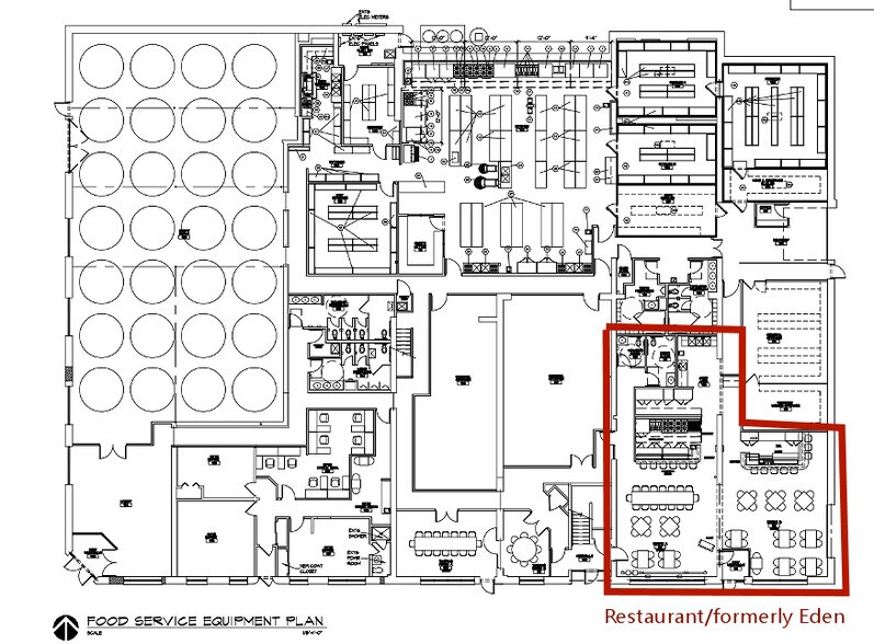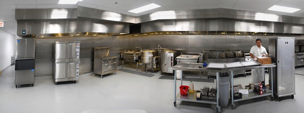 Huge, modern commercial kitchen *4 large refrigerators *3 large storage rooms *Multiple prep areas *Offices *Dishwashing area *secure storage