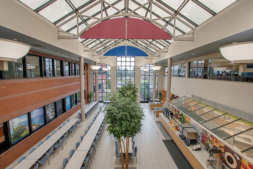 - Includes bright glass-ceiling atrium, full-service cafeteria, and flexible open layouts.