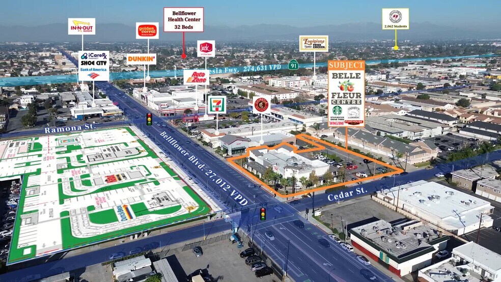 - Located on Bellflower Blvd with 27,000+ CPD and access to CA-91 with 274,000 CPD