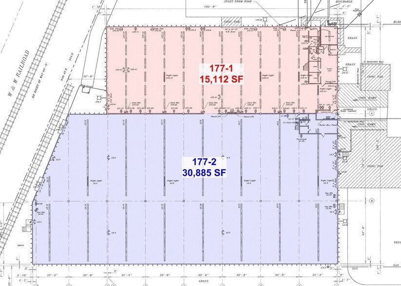 Can be subdivided—30,885 / 15,112 sq. ft. Single story with mezzanine & office areas. Precast pre-stressed concrete construction. (3) docks with 9’ x 10’ doors (2) 12’ x 12’ overhead doors at grade level (1) 16’ x 14’ overhead door at grade level (2) 9’ x 10’ dock doors with railroad access Rail readily available—Connected to Norfolk Southern & CSX by short rail hauler W&W