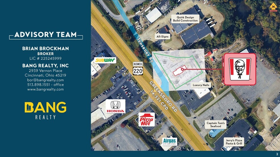 - TRAFFIC COUNTS: Well-positioned on a large ±1.05-acre lot with excellent visibility from Greensboro Rd (main north/south thoroughfare)