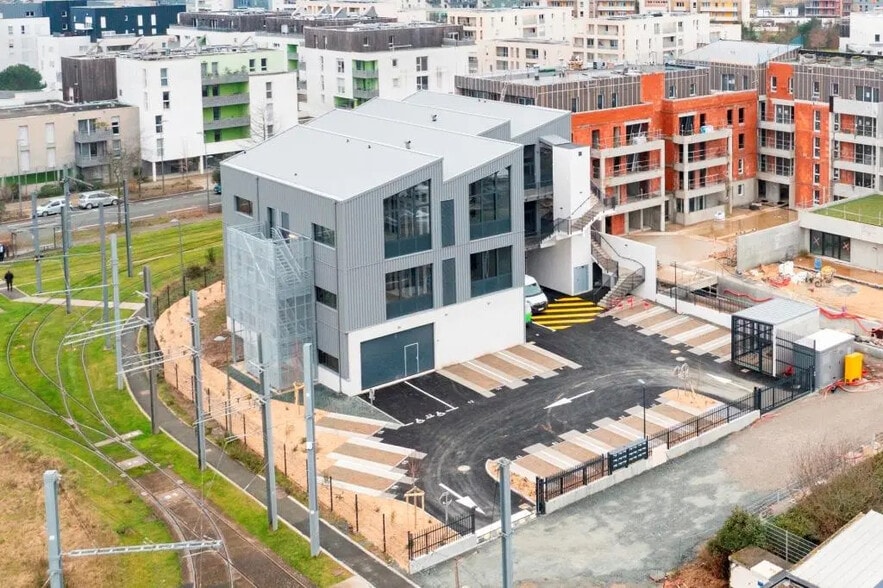 DESCRIPTIF - Bâtiment neuf livré en février, disponible de suite, croisement Bd Elisabeth Boselli et Avenue des Hauts-de-Saint-Aubin - Modules de 50 m² en étage combinables jusqu'à 178 m², 1 place stationnement/module. - Au R+1 (1er étage) ou R+2 (2ème étage) avec monte-charge - Idéal pour métiers d'art/créateurs avec grandes fenêtres et grandes baies (3,5 m de large, 2,5 m de haut) pour une excellente luminosité, plus sheds plein nord au R+2, avec grande hauteur sous poutre (3.4 m au R+1, 3,45 à 5 m au R+2 avec shed). - Peut aussi être utilisé pour bureau à aménager avec espace de stockage ou prototypage... L'EMPLACEMENT - Angers Ouest, croisement bd Boselli et avenue des Hauts de Saint-Aubin - A 3 min à pied d'une station tram et bus (Terra Botanica), 1 min en voiture de l'A11 et moins de 10 minutes du centre-ville. - A 5 min des commerces et d'un parking gratuit. 11 places visiteurs dans la rue. CARACTERISTIQUES - Ascenseur-monte-charge 630 kg extérieur (dimensions intérieures de la cabine 1400 x 1100 mm ok pour europalette). - Bâtiment accessible par utilitaires et camions porteur 19T - Livré brut clos couvert fluides en attente et isolé (bardage double peau). Gaines de ventilation. - Lumière naturelle. Triphasé 18 KVA. Possibilité d'installation d'une pompe à chaleur. - Charge d'exploitation 350 kg/m2 A NOTER - Code du Travail, possibilité de donner des cours si activité annexe. - Les locaux ne sont pas équipés d'extraction pour restaurant, seulement d'une gaine de ventilation standard, et ne peuvent servir à des activités de restauration type "dark kitchen". Dans le domaine alimentaire, seules de petites activités de traiteur, fabrication de biscuits, confitures... peuvent être envisagées. - Pas ERP (commerce avec public non supervisé). - Pas logement d'artiste. Également disponible à la vente à partir de 86 000 € HT pour 45 m² + 1 place de parking