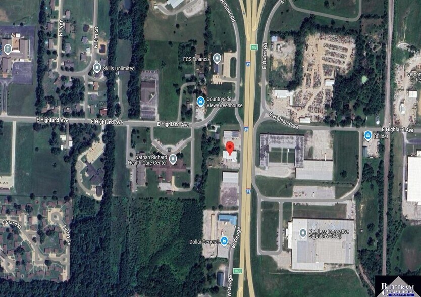 Installation commerciale unique avec un accès facile et une excellente exposition à l'I-49. Comprend plus de 2 300 pieds carrés d'espace de bureau de haute qualité ainsi qu'un entrepôt et un atelier de carrosserie attenants avec alimentation triphasée de 220 V et plusieurs portes basculantes pour un accès facile.