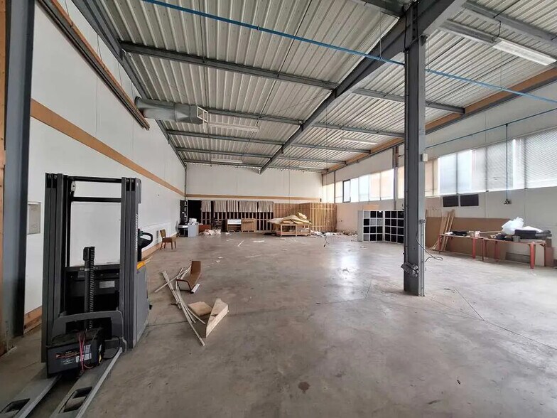 Hauteur sous plafond de 5 à 5,5 m, 3 portes sectionnelles de dimensions 4 m x 5,50 m. Le système d'air comprimé reste disponible. L'ensemble contient une chaudière GRUSS rattachée à un silo de stockage.