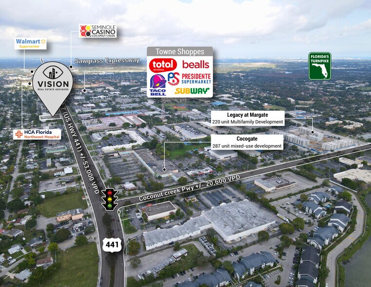 The Property features 110 linear feet of premium frontage along State Road 7, capturing the attention of nearly 53,000 vehicles per day. It benefits from robust retail synergies, situated near HCA Florida Northwest Hospital and surrounded by high-performing national tenants including Culver’s, Taco Bell, KFC, and Walgreens. With outstanding market fundamentals and a "zero-day" modern infrastructure, this opportunity stands out as the most versatile and well-located freestanding asset currently available in the Margate submarket.